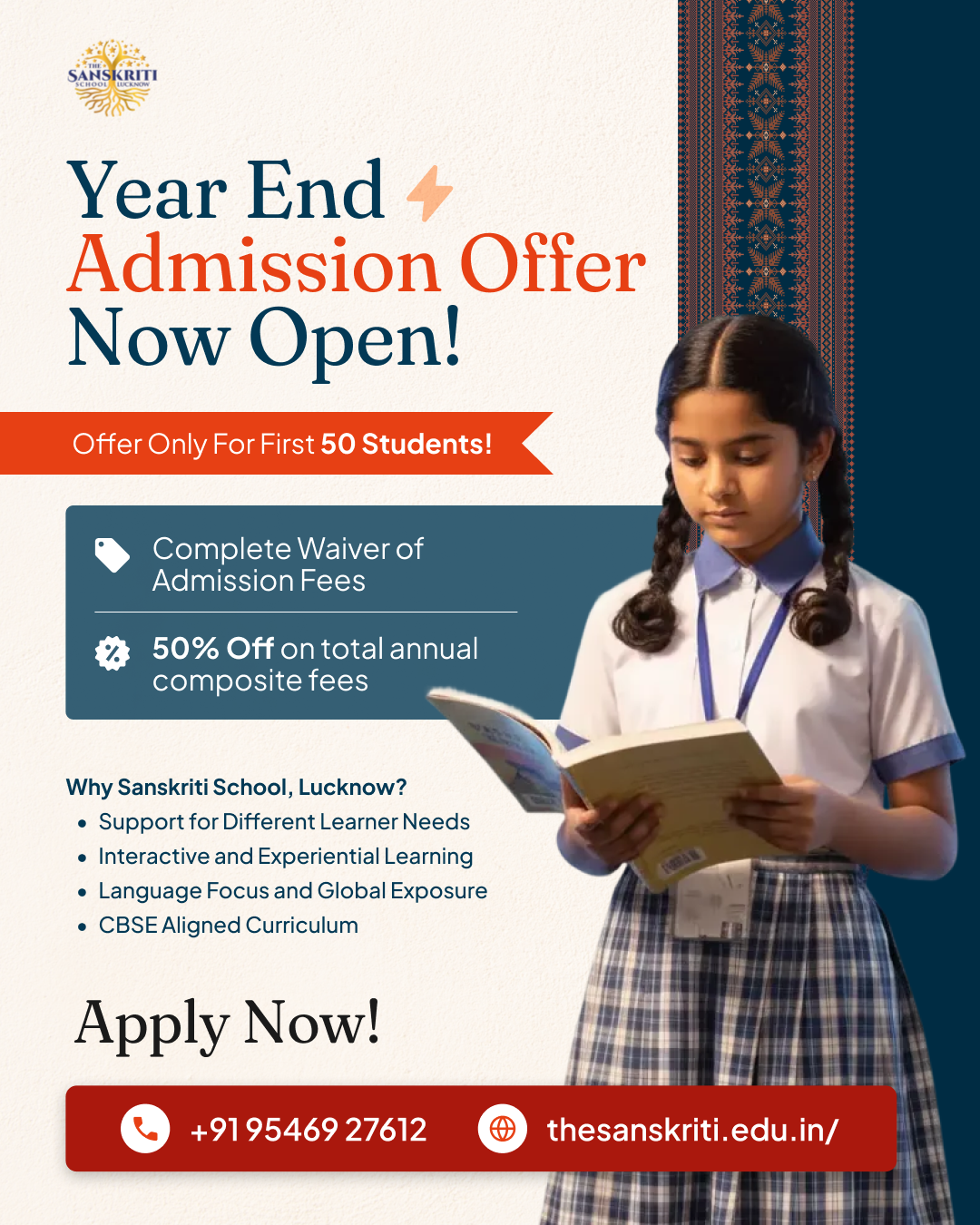 by TSSL Guide December 15, 2025 Early Bird Admission Offers for ACY 2026-27 Sanskriti School announces Early Bird Admissions for 2026–27, offering limited seats with admission fee waiver and discounts of up to 50 percent on total annual composite fees. Read More